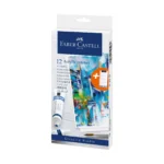 Premium quality vibrant acrylic paint from Faber-Castell has high brilliance, good lightfastness and is easily blendable. Faber-Castell acrylic paint will have a highly pigmented, glassy finish on almost any smooth surface. Complete paint set comes with a mixing palette and 12 vibrant colors of acrylic paint. Perfect for beginners! Acrylic paint has a creamy consistency, are extremely versatile and mistakes can be corrected at any time with ease. The intense, brilliant and mixable shades of the acrylic paint can be used straight from the tubes or diluted with water. Use acrylic paint with brushes, spatulas, rollers, and other painting tools! Also try mixing acrylic paint with charcoal, pastels, and other mediums to create a mixed media art piece. After your artwork dries the acrylic paint is water resistant!