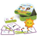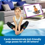 Practice your ABCs while learning kid-friendly yoga poses! This set of 26 double-sided cards pairs upper- and lowercase letters with real-life imagery of vocabulary words and kid-friendly yoga poses starting with every letter of the alphabet. Plus, the squeezable slow-rise foam sun gives kids a tactile way to calm down and refocus. When yoga time is done for the day, everything stores in a tin box for easy storage.