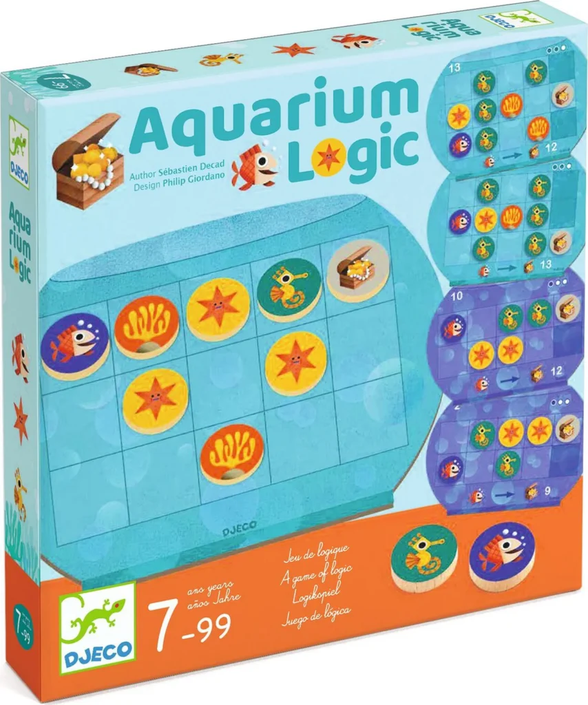 Help your new fish friends find their way to the treasure chest! You must find a path through the aquarium using the tiles to reach the treasure chest at the end. This fun solo logic game comes with 30 different puzzles to complete. This game helps develop logical thinking, problem-solving, and patience.