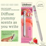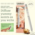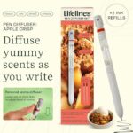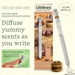 Keep your ideas flowing with a pen that diffuses delightful scents as you write. This pen contains essential oil blends from one of six special Sweet Treat scent families – Apple Crisp, Chocolate Chip Cookie, Cinnamon Roll, Cotton Candy, Spiced Chai Latte, or Strawberry Milkshake. Simply lower the tabs to diffuse scent-or shut them to use as a regular pen. Pen uses black ink and writes flawlessly with elegant 1.0mm ballpoint tip and an incredibly comfortable grip.