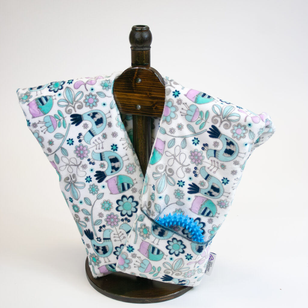This shoulder wrap is made with high-quality Luxe Minky patterned fabric, which means that it’s super soft and some of the select patterns are also pleasantly textured! The specific textures will vary slightly from pattern to pattern, but all were hand-picked to provide a soothing sensory experience. If you would prefer a smooth fabric, simply pick one of our non-textured Patterned Minky options.
