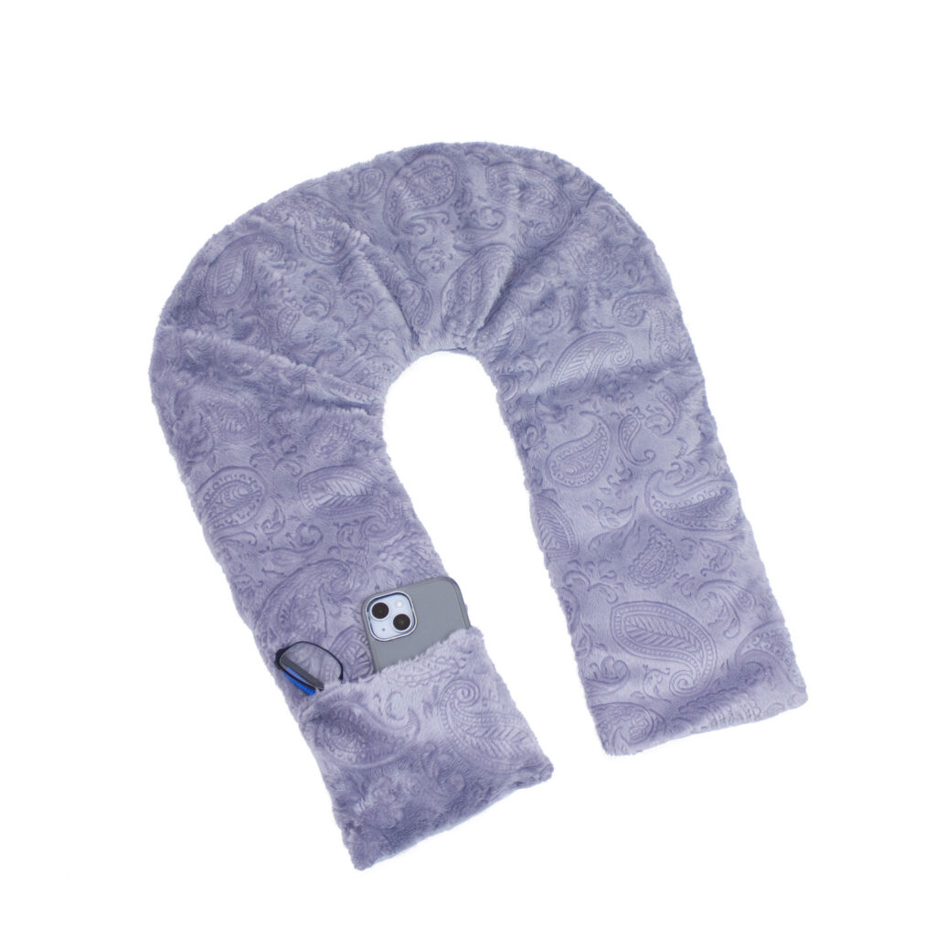 The Luxury Aromatherapy Shoulder Wrap with Pocket is a custom-made, Stacy’s Sensory Solutions exclusive that satisfies multiple sensory inputs and is made with highest-quality materials. This weighted shoulder wrap can be heated and draped across your neck and shoulders to soothe aching muscles, and the ultra-soft minky sleeve is filled with aromatic lavender and buckwheat to help ease aches and pains. The warmth, pressure, and wonderful aroma have a very calming, relaxing effect. As an added bonus, this neck wrap has a pocket that’s perfect for holding your phone or other small items that you want to keep close at hand.