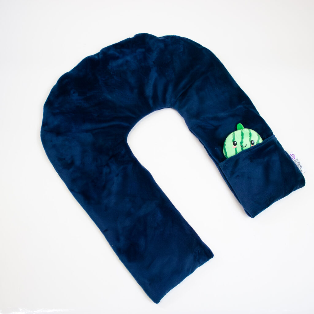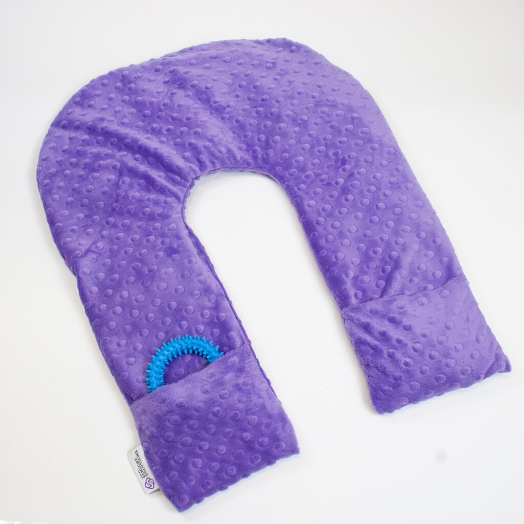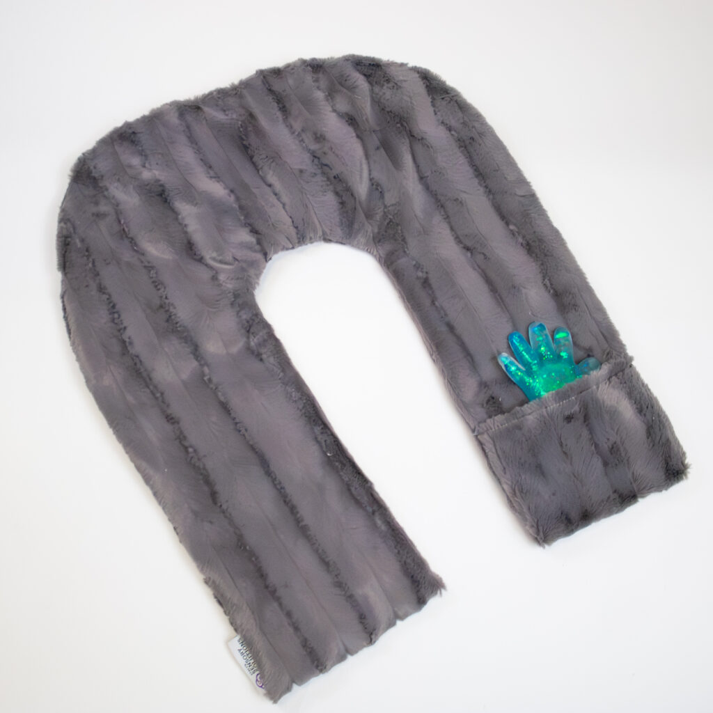 The Luxury Aromatherapy Shoulder Wrap with Pocket is a custom-made, Stacy’s Sensory Solutions exclusive that satisfies multiple sensory inputs and is made with highest-quality materials. This weighted shoulder wrap can be heated and draped across your neck and shoulders to soothe aching muscles, and the ultra-soft minky sleeve is filled with aromatic lavender and buckwheat to help ease aches and pains. The warmth, pressure, and wonderful aroma have a very calming, relaxing effect. As an added bonus, this neck wrap has a pocket that’s perfect for holding your phone or other small items that you want to keep close at hand.