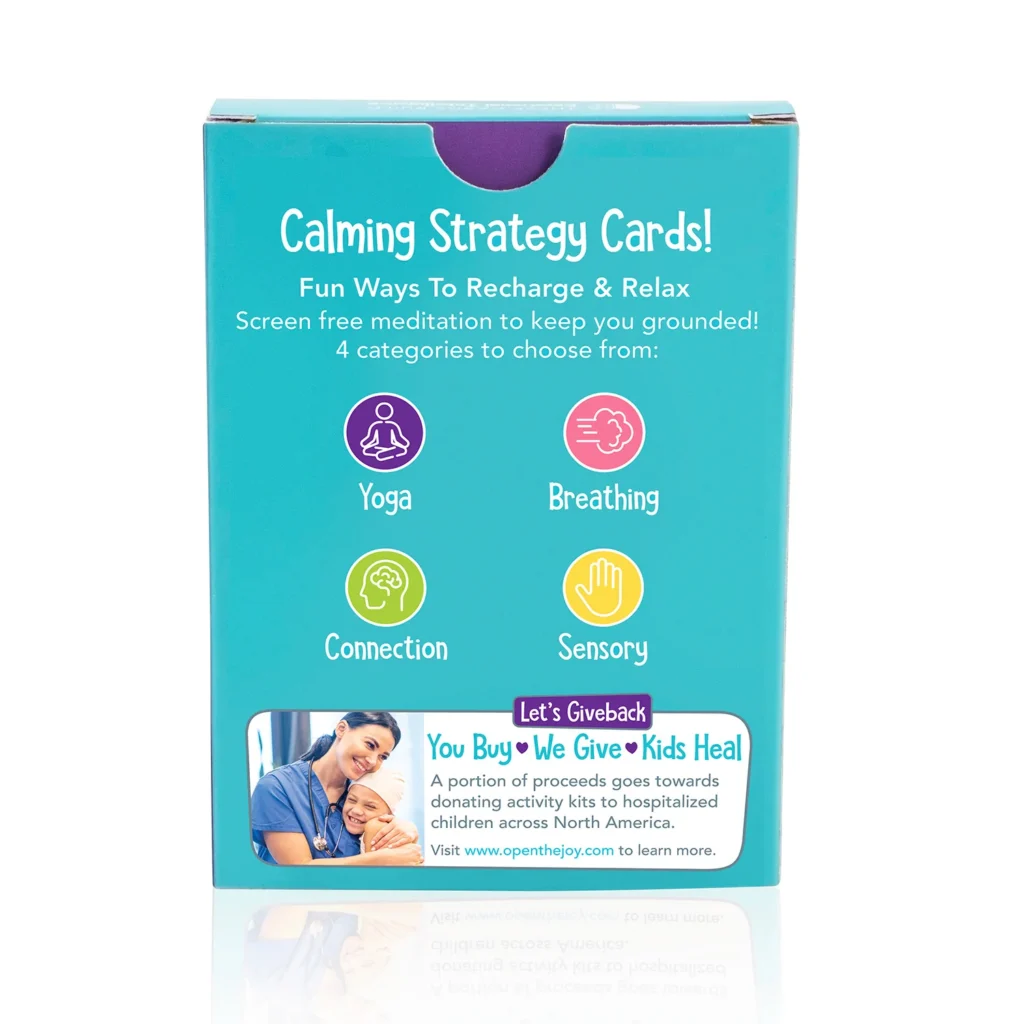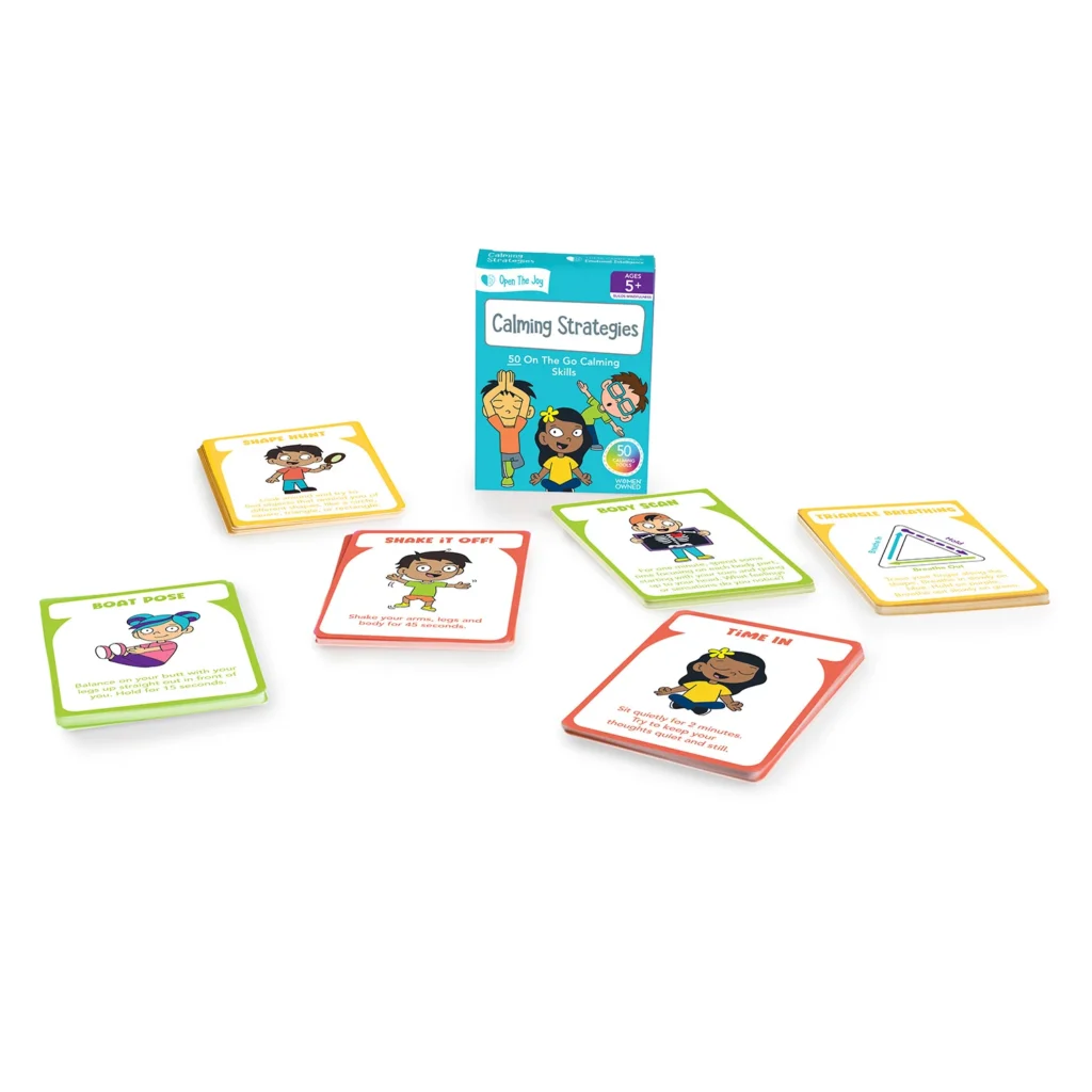 Navigate big emotions with Open The Joy’s Calming Strategy Cards, a treasure trove of over 50 mindfulness techniques to add to your parenting toolkit. These cards offer an array of calming strategies from yoga poses and breathing patterns to sensory tools and connection activities to help guide children from overwhelming feelings to a state of calm. Whether it’s a moment of frustration or a day of high spirits, these cards provide a practical and fun way for kids to learn how to self-soothe and manage their emotions.