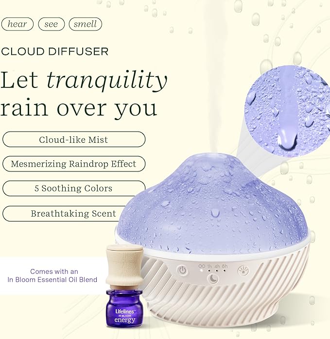 - Lifelines Cloud Ultrasonic Diffuser: Immerse yourself in a multi-sensory experience as cloud-like mist condenses into droplets that roll down like rain, while soothing aroma fills the air for ultimate relaxation. Essential Oil Blend included!