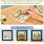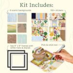 - Kit Includes: Everything you need to create 6 miniature scenes customized to your liking, with 2 frames for your two favorites! Includes 6 scenic backgrounds, 150+ stickers, a “pick-&-stick” tool, and two 9″ x 9″ frames with white mats & stands.