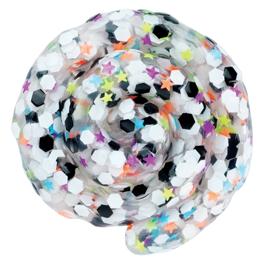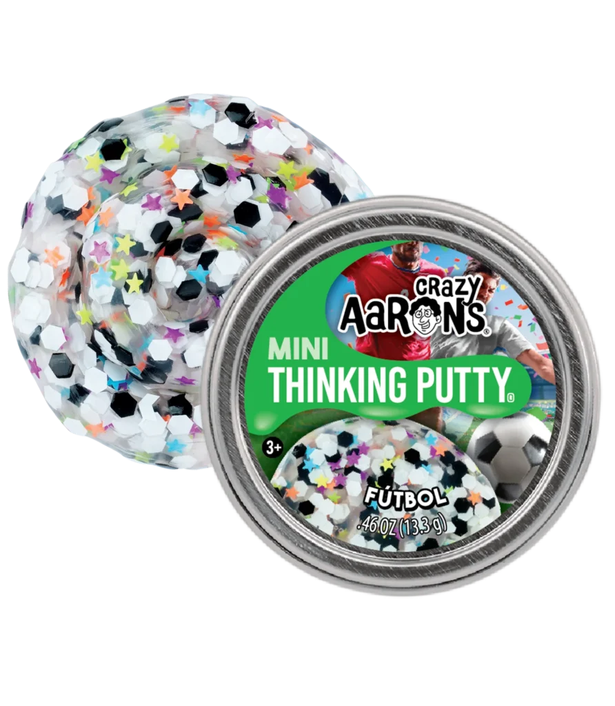 - This Futbol Thinking Putty comes in a 2 inch tin with 0.47 ounces inside; Color: Clear with sequins