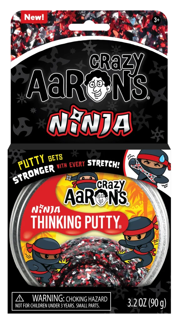 Crazy Aaron’s Ninja Thinking Putty gets stronger with every stretch! This putty has a unique formula that builds resistance as you play, getting tenser with each stretch and helping you get stronger like a true ninja! Leaving the putty in the tin for a little while will let the putty revert back to its normal resistance, so you can start all over again.