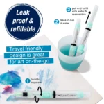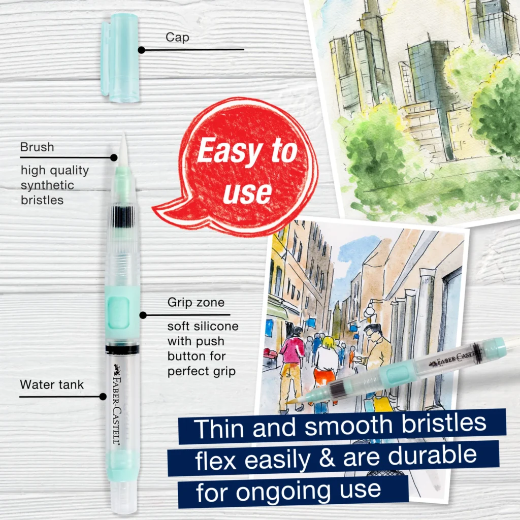 The Deluxe Water Brush has a channel that fills easily with water for use with water-soluble mediums like Gelatos and watercolor pencils. Thin and smooth bristles flex easily and are durable for ongoing use. Easy-to-use valve allows you to control the flow of water. Leak-proof.