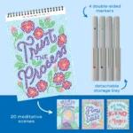 - Comes with 20 meditative scenes and 4 double-sided markers (8 vibrant colors) in a detachable storage tray