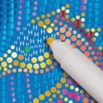 - First, choose a color for each letter and fill in the key at the top of the page. Then, follow the key to dot the letters on the page, creating shimmering underwater scenes filled with coral reefs, sea creatures, and tidal magic.