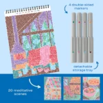 - Comes with 20 meditative scenes and 4 double-sided markers (8 vibrant colors) in a detachable storage tray