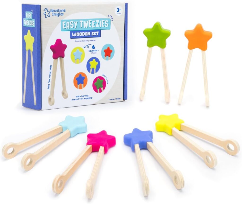 - Set includes: Six colorful, durable Easy Tweezies; the wooden squeezers come in six different colors; preschool classroom must have for hands-on activities, small groups, centers, sensory bins, and more; for ages 3+