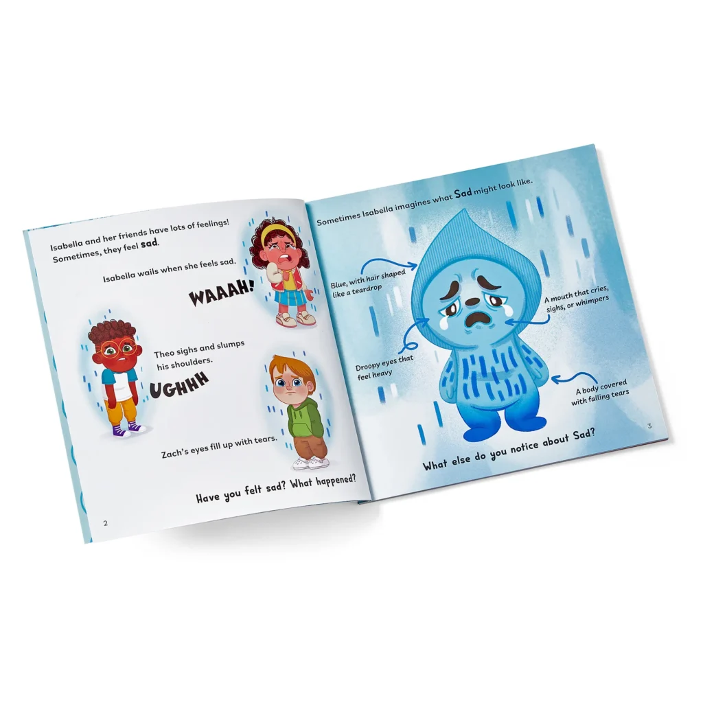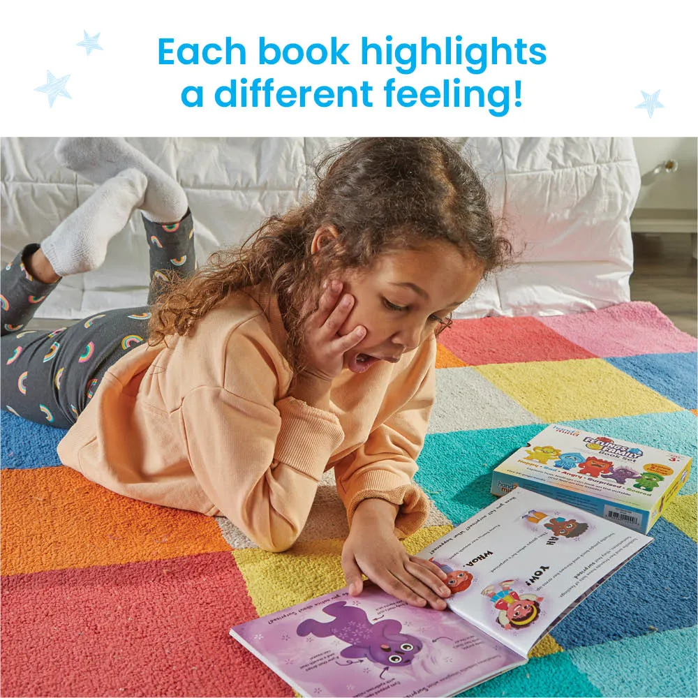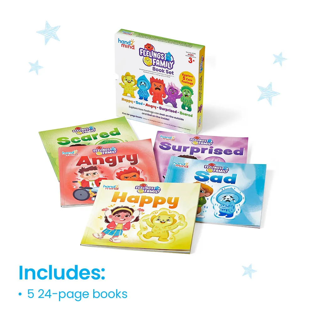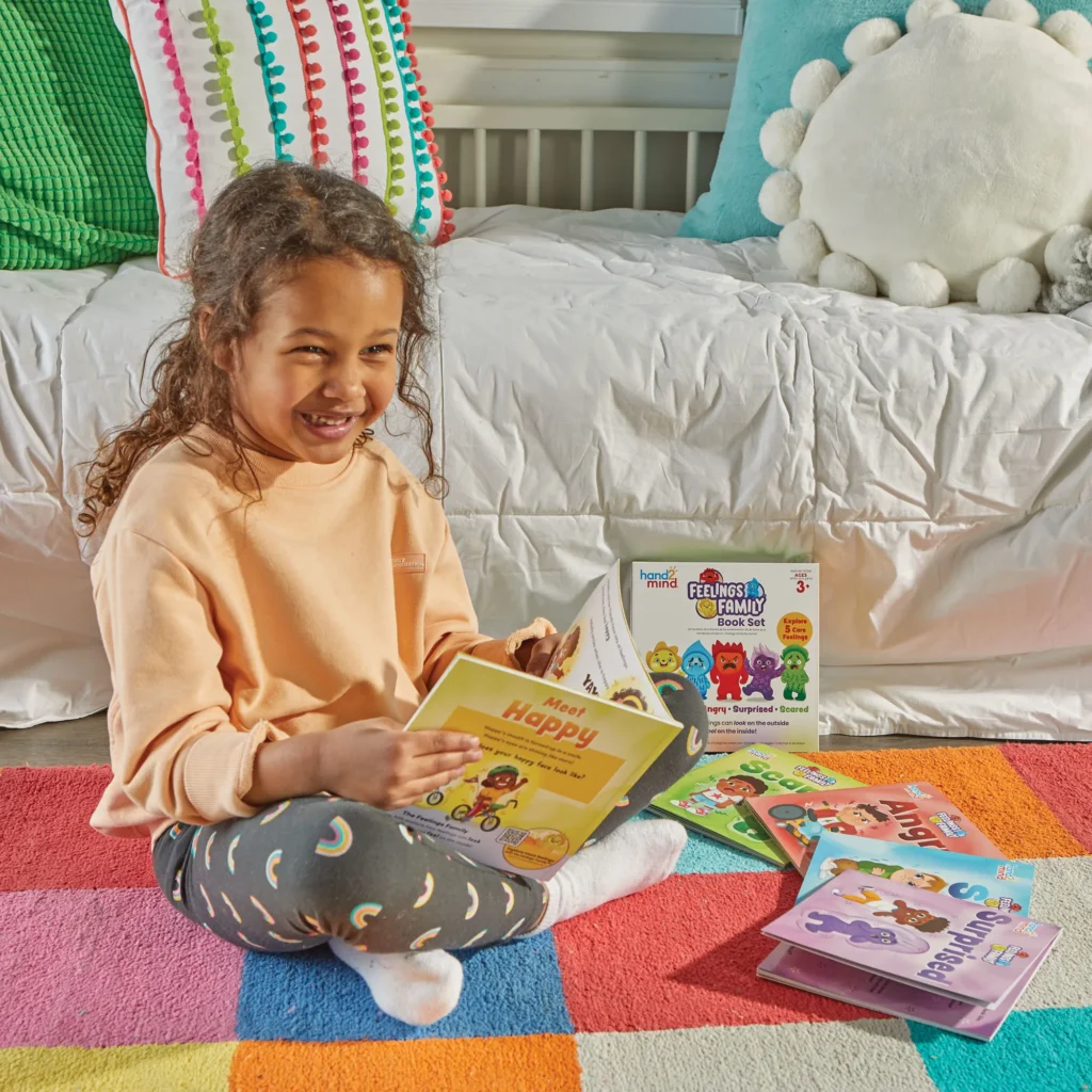 The Feelings Family helps children explore how feelings can look on the outside and feel on the inside. This book set teaches children about Happy, Sad, Angry, Scared, and Surprised through lively characters and relatable scenarios. Prompts and questions are included within the 5 books to engage children and spark thoughtful conversations. Perfect for calm-down corners, therapy rooms, classrooms, and more!