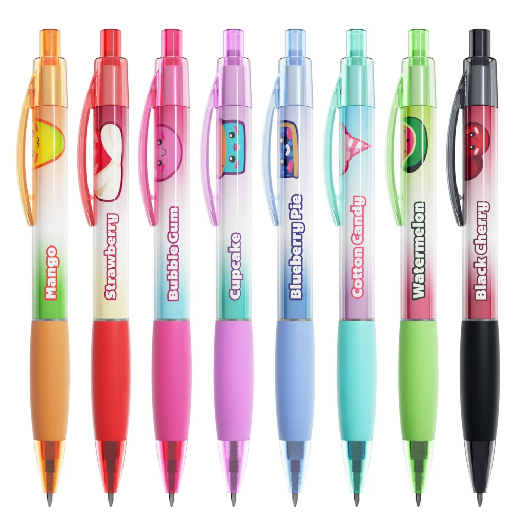 The Glitter Gel Smen is a scented clickable pen that emits its scent through the unique grip design. It comes with colored glitter gel ink and is packaged in a plastic freshness tube.