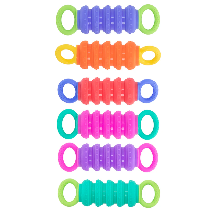 This little fidget is fun for all ages! Simply pull to expand and then push back together for a fun resistance and a delightful sound!