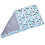 The front of this blanket will feature a cool “Blue and Gray Bubbles” print in a soft minky fabric, and the back will feature a gray and bumpy minky fabric!
