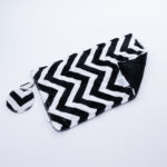 The front and back of this lap pad will feature lightly textured, super soft minky fabric. The back of the lap pad will feature a solid black minky, and the front will feature a black and white chevron print!
