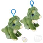 Take a buddy wherever you go with this Mighty Quakes Triceratops Jumbo Backpack Clip! A fun twist on the classic pull toy, you can pull the dino egg away from the triceratops and it will vibrate as they come back together!