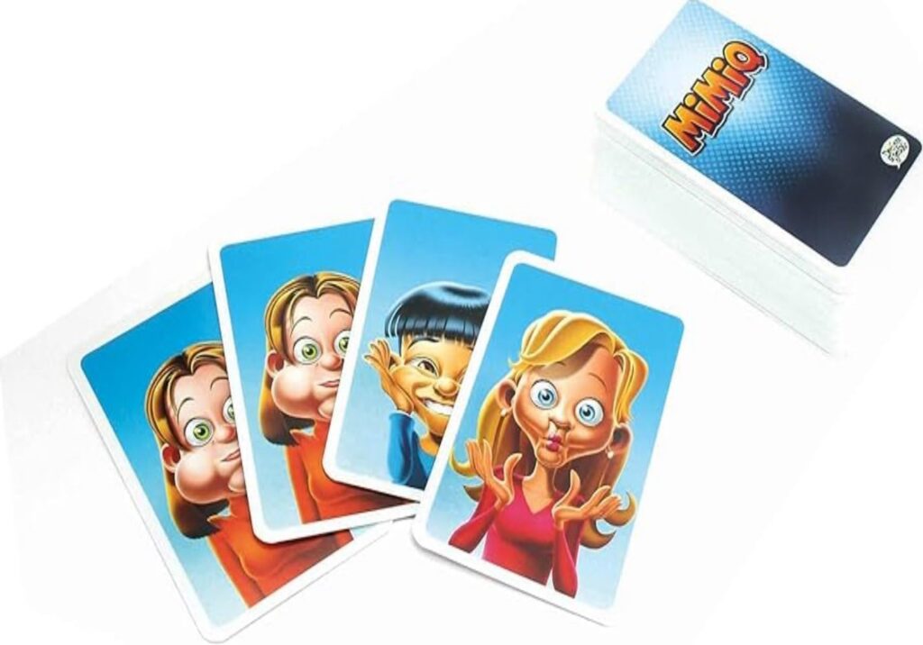 The aim of the game is to collect the most sets of 4 identical cards. Win cards from your opponent by “MiMiQ-ing” facial expressions on the wanted cards. You can stick out your tongue if you do not have the requested card.