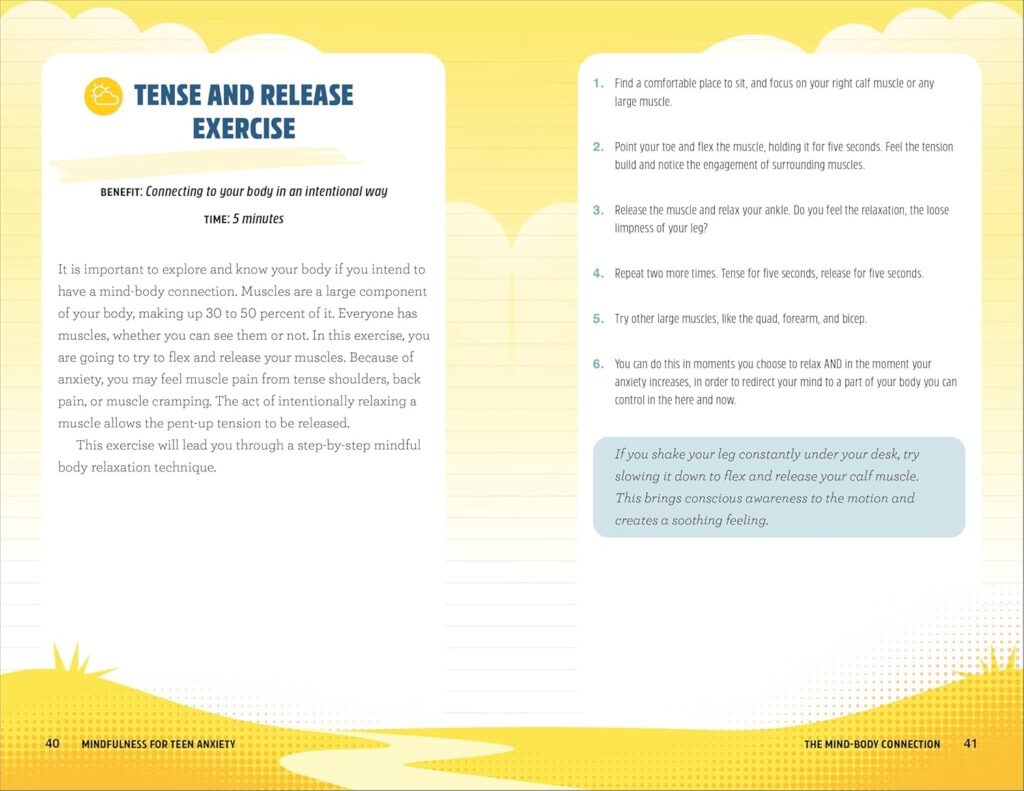 - Mindfulness made simple―This teen anxiety book has a simple, supportive format that makes it easy for them to experience the benefits of mindfulness throughout their day.
