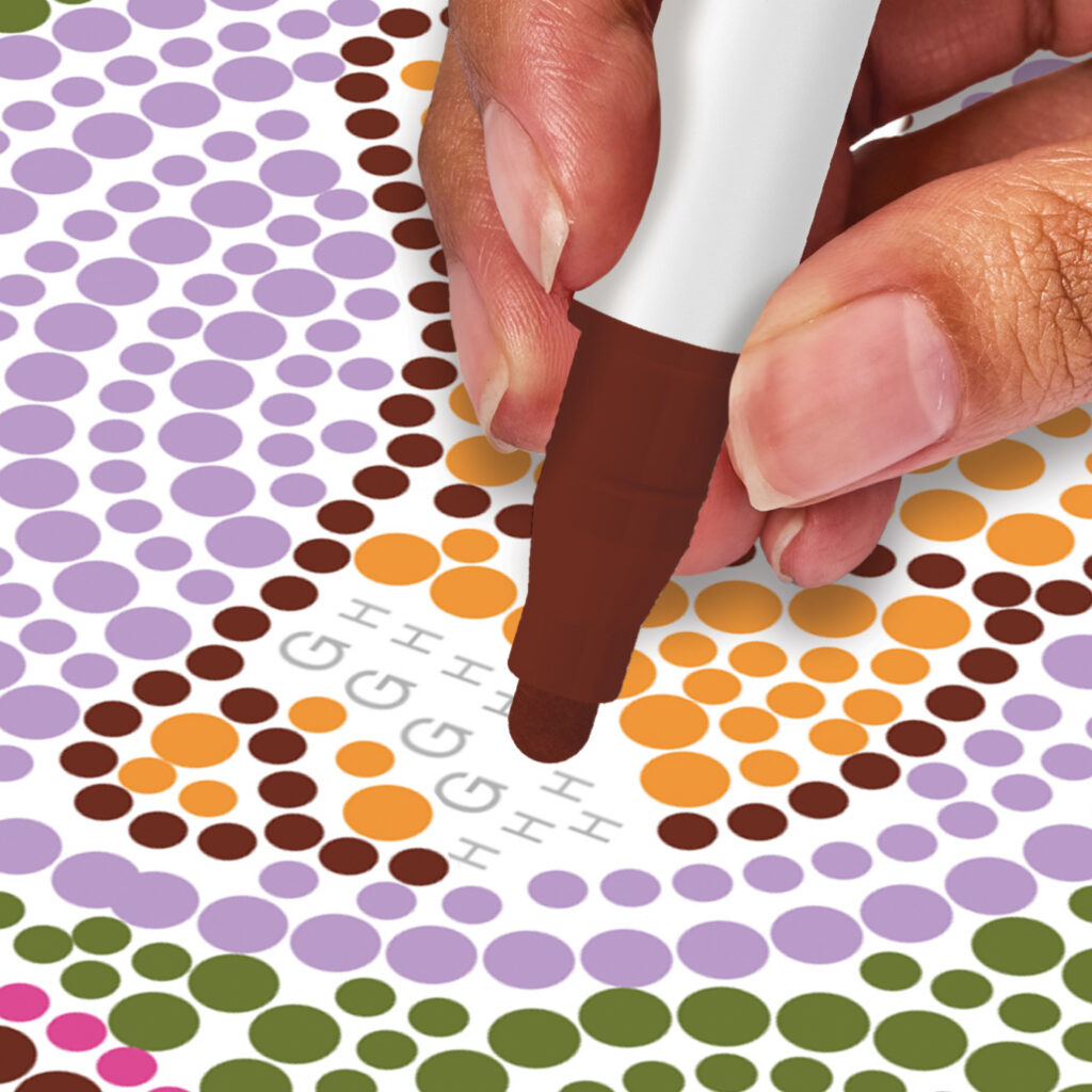 - Press marker firmly to cover large letters and tap lightly to cover small letters.