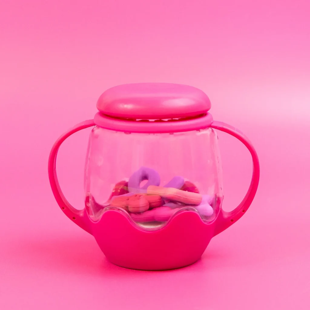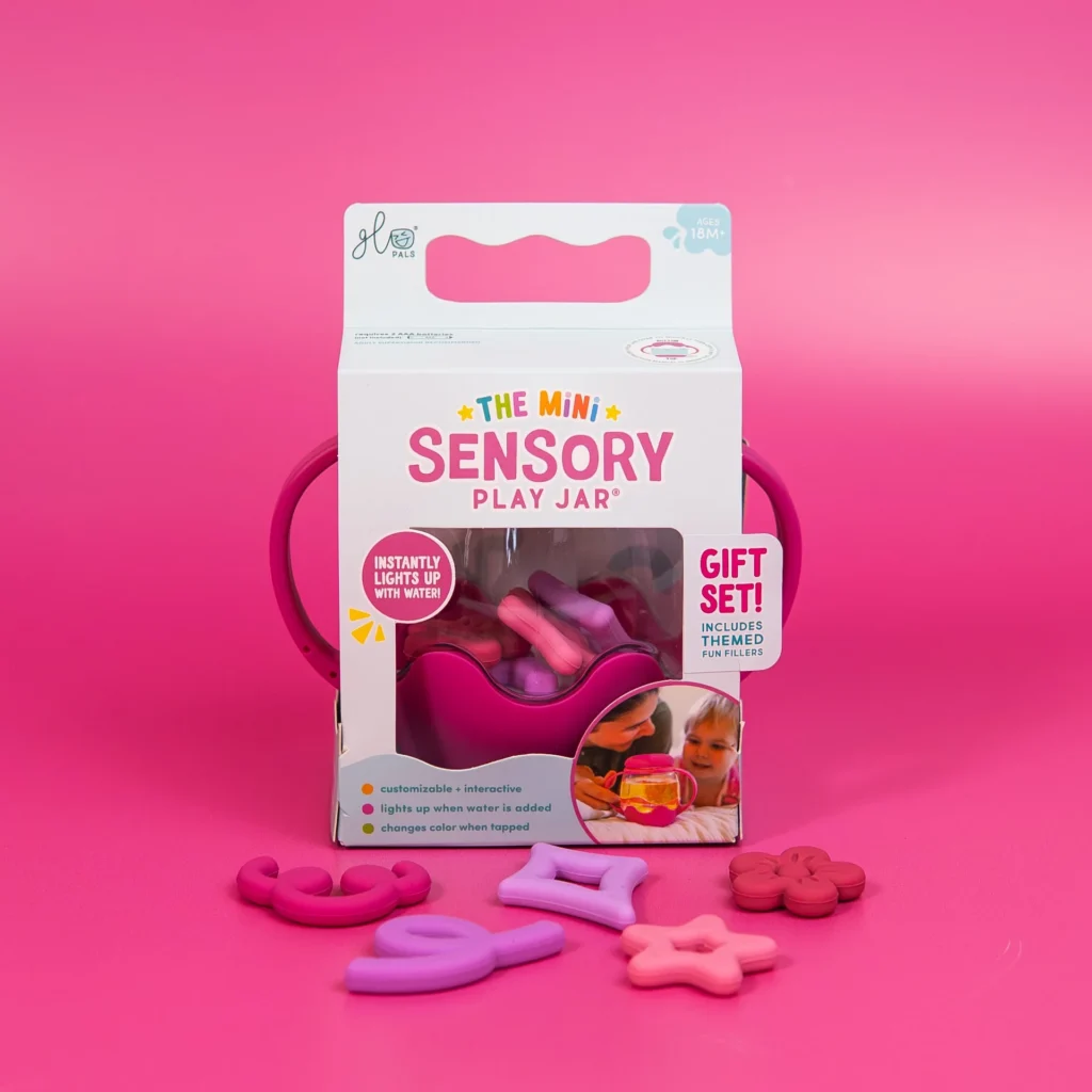The fan-favorite Sensory Play Jar®, now MINI and bundled for even more glowing fun! Each Mini Sensory Play Jar® Gift Set comes with 5 soft-touch silicone shapes, perfectly sized for little hands and designed to inspire, swirling, shaking and sensory discovery right out of the box.