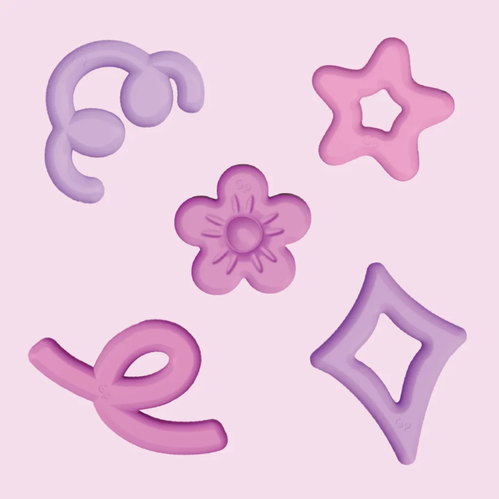 Gumdrop – Pink and purple tones with a whimsical mix of sparkles, a flower, and a butterfly