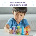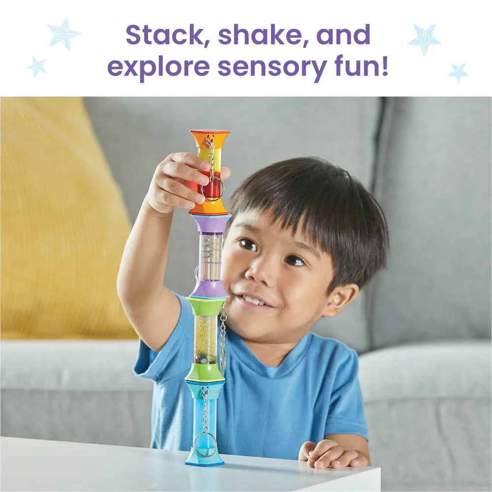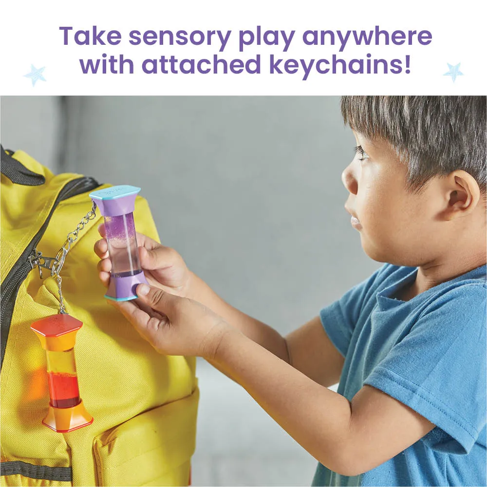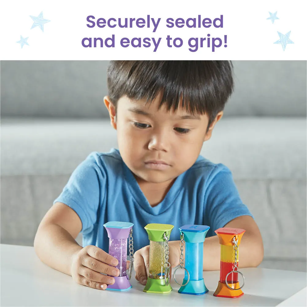 Help children calm down, focus, and relax in the classroom, at home, or on the go. The sensory bottles are designed with key chain attachments to easily connect to a backpack or key ring. The stackable design is filled with unique sensory materials. Includes 4 easy-to-grip, securely sealed bottles and 4 key chains.