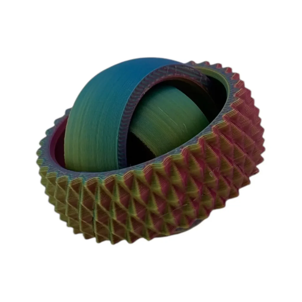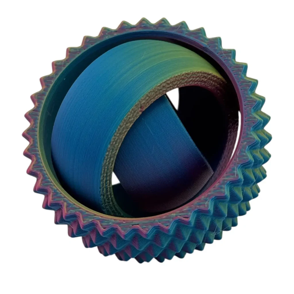 This Spiky Gyro Fidget is well-balanced and 3D-printed, which means it will give you smoother, long-lasting spins that will keep you engaged for longer and have a satisfying feel.