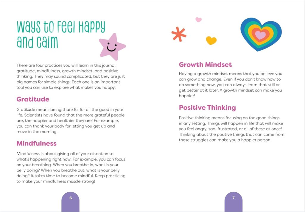 4 ways to feel happy — This guided journal for kids shows them what it means to practice gratitude, mindfulness, growth mindset, and positive thinking, and how they can help make every day better.