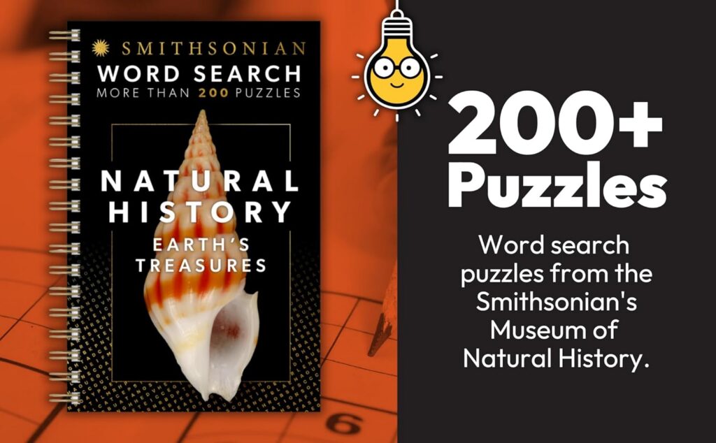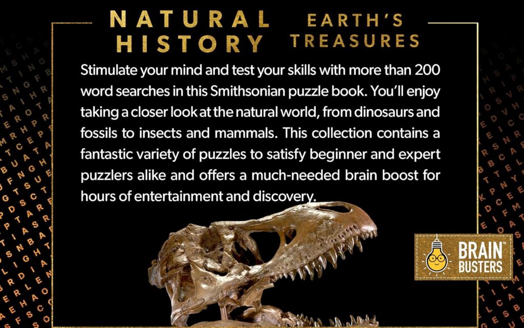 More than 200 word search puzzles are dedicated to the fascinating exhibits and artifacts found in the Smithsonian’s Museum of Natural History. Includes prehistoric life, dinosaurs, rocks and minerals, plants, and animals. Search for words that relate to and describe these treasures, and read interesting facts along the way. Word lists include easy, moderate, and challenging searches. Keep your brain fit by and test your word-finding skills searching vertically, diagonally, forwards, and backward in pursuit of hidden words.