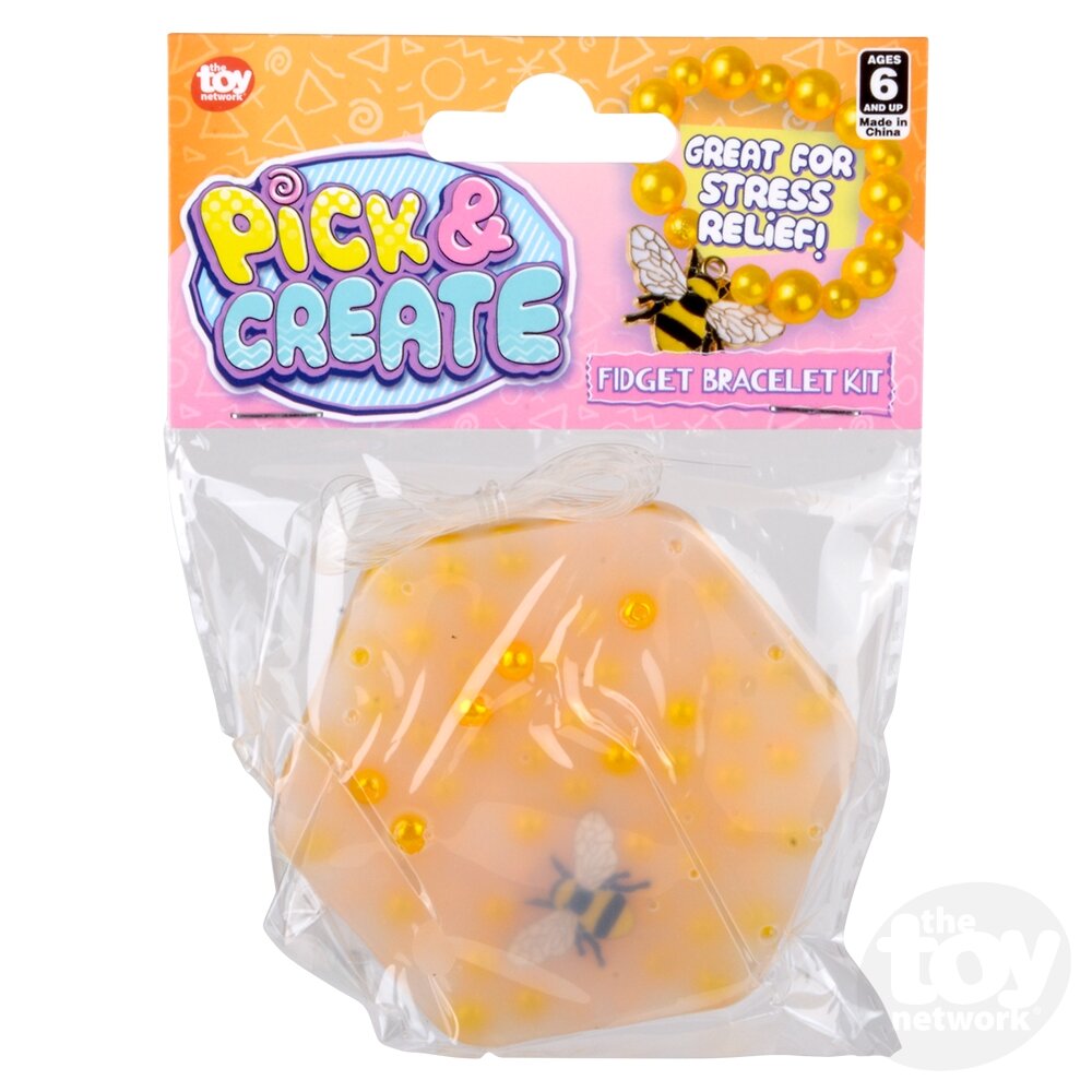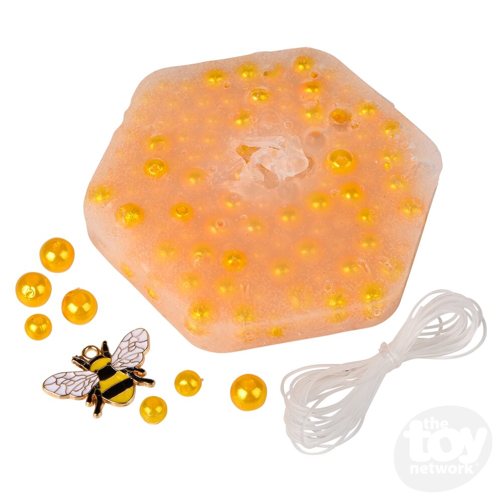 This cool picking pad doubles as both a stress-relief tool and a fun craft! The hexagonal pad is full of gold-colored beads and a one special bee charm that you can pick out of the pad use to turn into a cute bracelet.