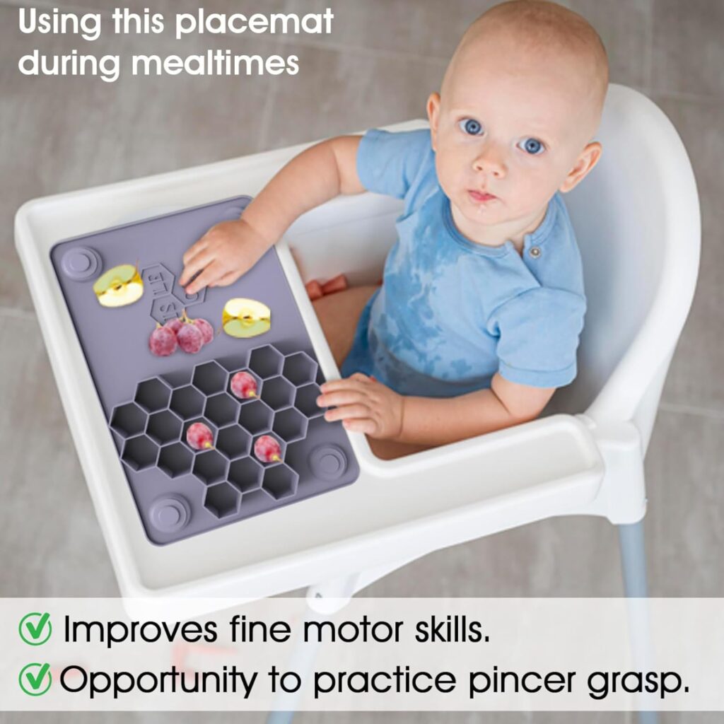This innovative mat is a wonderful tool designed to strengthen fine motor skills, encourage self-feeding, and open a pathway to independence!