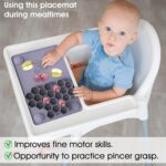By using this Pincer Pal Mat, your child will be able to consistently work on their pincer grasp, hand-eye coordination, and self-feeding in a fun and rewarding way!
