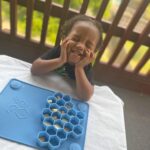 You can even use the mat for further fine motor activities – place little toys or treasures in the segments, and have your child pull them out with their fingers or with a pair of child tweezers.