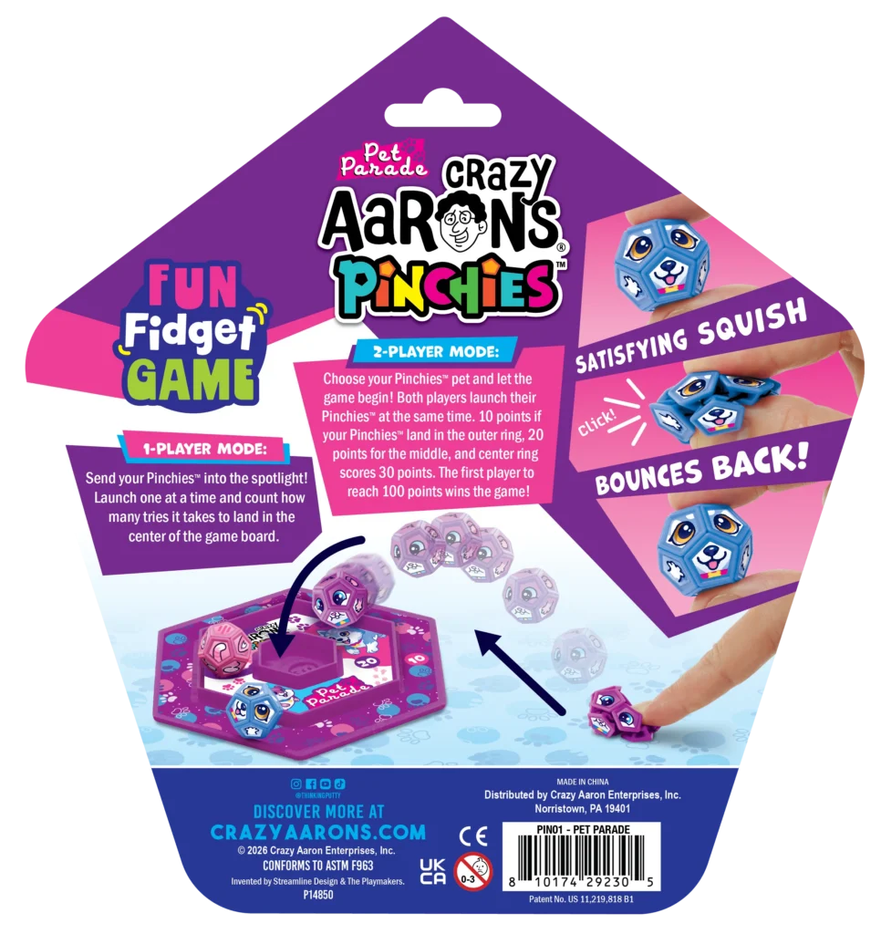 Meet Pinchies™—the squishy, squeezable fidget friends that clickety-clack with every pinch! Each set comes with 3 collectible characters you can play with anytime, plus a game board that turns them into a fast-paced 1–2 player challenge. Whether you’re fidgeting solo or facing off with friends, Pinchies™ bring endless fun!