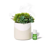 This beautiful faux succulent plant doubles as a diffuser, filling your space with delightful aroma throughout the day. No watering, sun, or re-soiling needed! Includes bottle of Lifelines Essential Oil Blend with innovative ClickWick design, allowing bottle to click into the bottom of the planter for a seamless aroma experience. Simply insert the included oil blend and be soothed by the scents of nature. Perfect for any room in your house and particularly great for small or high-trafficked spaces like dorm rooms, apartments, and homes with young kids or pets.