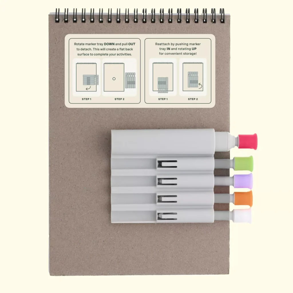 - Comes with 20 meditative scenes and an innovative “pogo” marker with 4 interchangeable colors and 1 color-changing ink, all in a detachable storage tray.