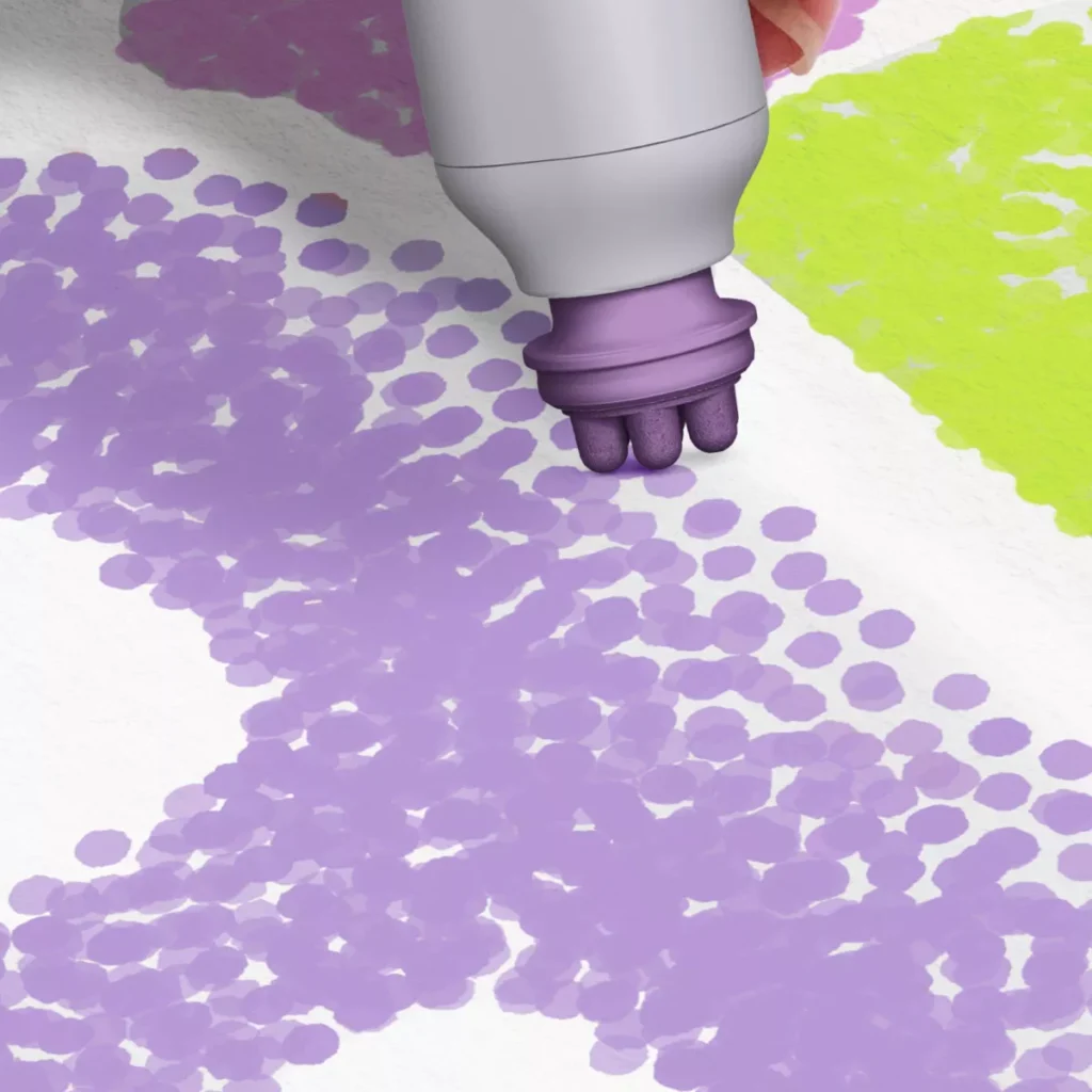 - Insert desired color cartridge into marker; then, press down onto the page and feel a satisfying bounce-back with every dot.