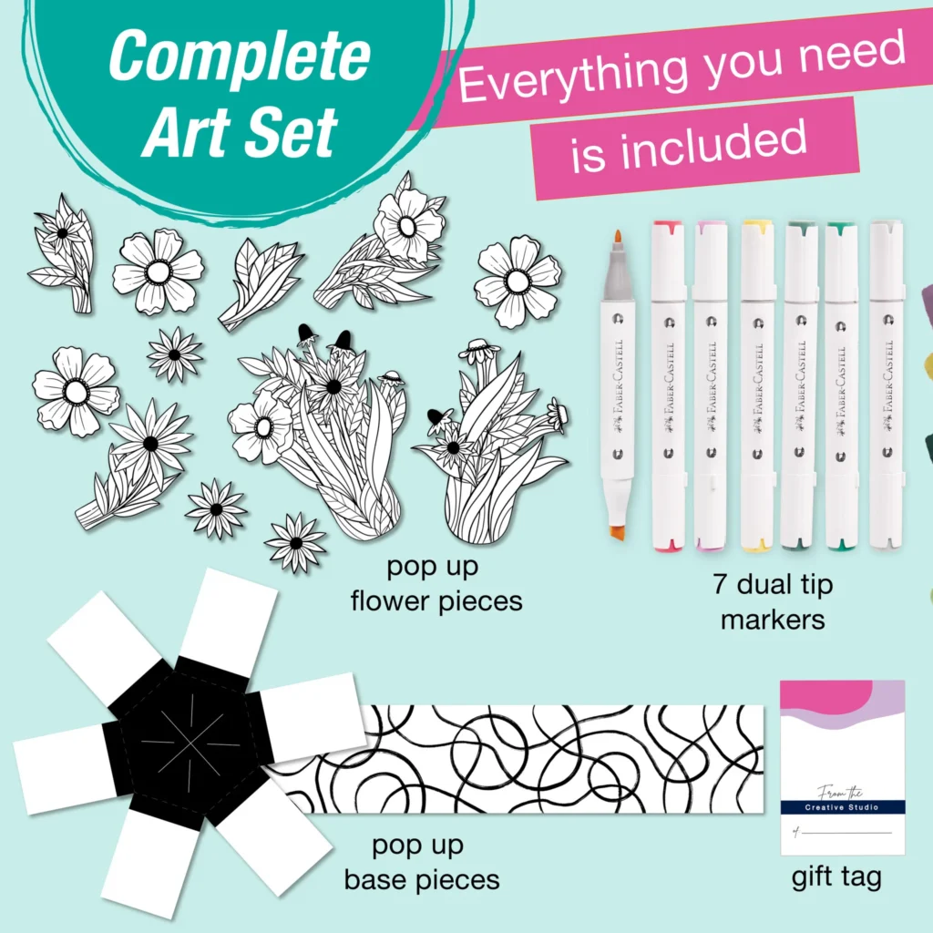 Brighten any space with the vibrant charm of our Pop Up Coloring Wildflowers Bouquet! This delightful creation combines the joy of coloring with the beauty of wild flowers, making it a perfect gift or decorative piece.