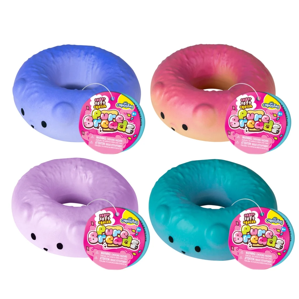 Introducing Pure Breads Bagel Pets Stress Squeeze! This slow-rising, soft, and squishy bagel comes with an adorable animal face that makes every squeeze a delight. Perfect for sensory play, stress relief, or collecting, they’re irresistibly fun for kids and adults alike. Durable, safe, and totally addictive, these kawaii bagel pets are the perfect whimsical addition to any sensory tool box.