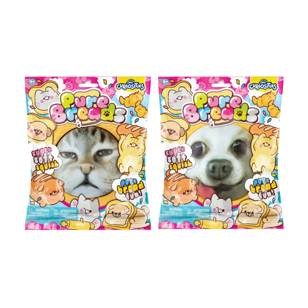 Introducing Pure Breads Pets Stress Squeeze! This slow-rising, soft, and squishy piece of bread comes with an adorable animal face that can pop in and out of the bread for two fidgets in one! Perfect for sensory play or stress relief, they’re irresistibly fun for kids and adults alike. Durable, safe, and totally addictive, these adorable bread pets are the perfect whimsical addition to any sensory tool box.