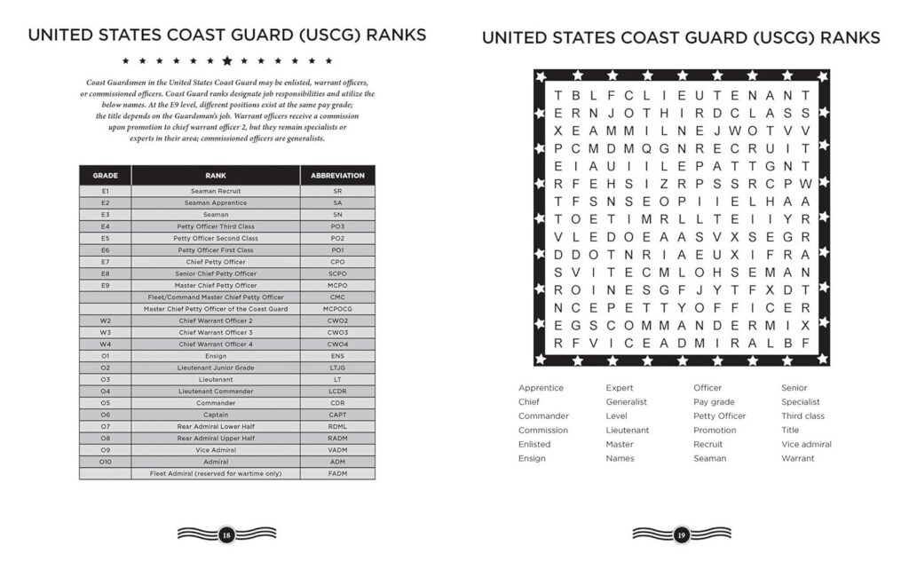 Along with more than 100 themed, large-print word search puzzles, Salute to the Armed Forces Word Search includes informative articles, fun facts, and trivia about the United States military, past and present. All the active branches are represented—Army, Navy, Air Force, Marine Corps, Coast Guard, and the newly created Space Force—in this book that will appeal to military veterans and history enthusiasts alike. Whether you’re at home or on the go, word searches are a great way to enjoy a little time for yourself—while learning a bit more about the proud traditions of the United States Armed Forces.