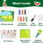 Bring over 50 stickers to life with colorful sand! Create stunning scenes of monkeys, elephants, seahorses, and more, sparking hours of imaginative play. The special tray and magical rainbow pen make crafting easy and endlessly fun!