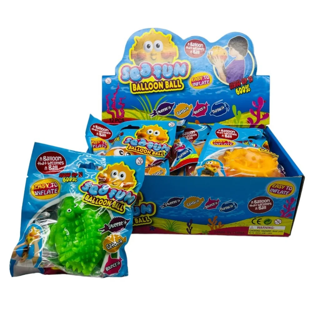 This super stretchy Balloon Ball inflates up to 9.75″! Simply use the enclosed nozzle to blow up the ball, then squeeze it, bounce it, throw it and catch it. Can be inflated and deflated multiple times. Sea Fun Balloon Balls can be used as a punch ball!