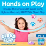 Sensory play in a mini but exciting kit! The Sensory Minis Pet Kit is packed with adorable animal, mess-free fun including a cute cat and a playful puppy dog figure, colorful paw print mix-ins, and soft, fluffy cloud clay.This grab-and-go sensory toy provides everything needed for mess-free, tactile play that supports fine motor skills and sensory development. Designed with little hands in mind, it is a delightful experience that encourages imaginative play, motor development, and calming creativity. Just open the lid, dig, scoop, and mold your animal world—then seal it up for next time. Perfect for ages 3 and up.