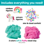 Contents Include: 1 sensory jar, pink and turquoise cloud clay 2.1 oz (60 g), confetti, 1 unicorn, 1 rainbow
