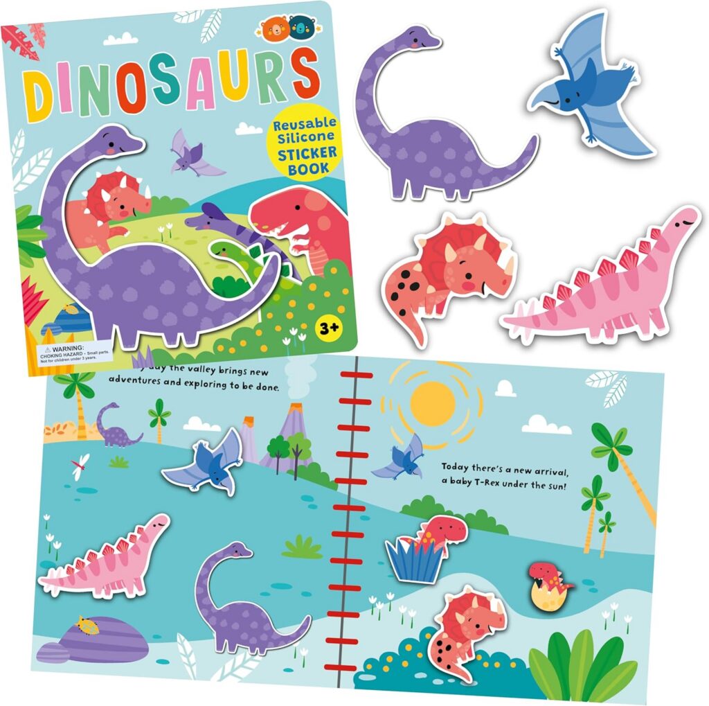 This engaging activity book is packed with reusable silicone stickers, letting children create endless dinosaur-themed scenes again and again.