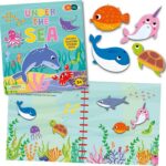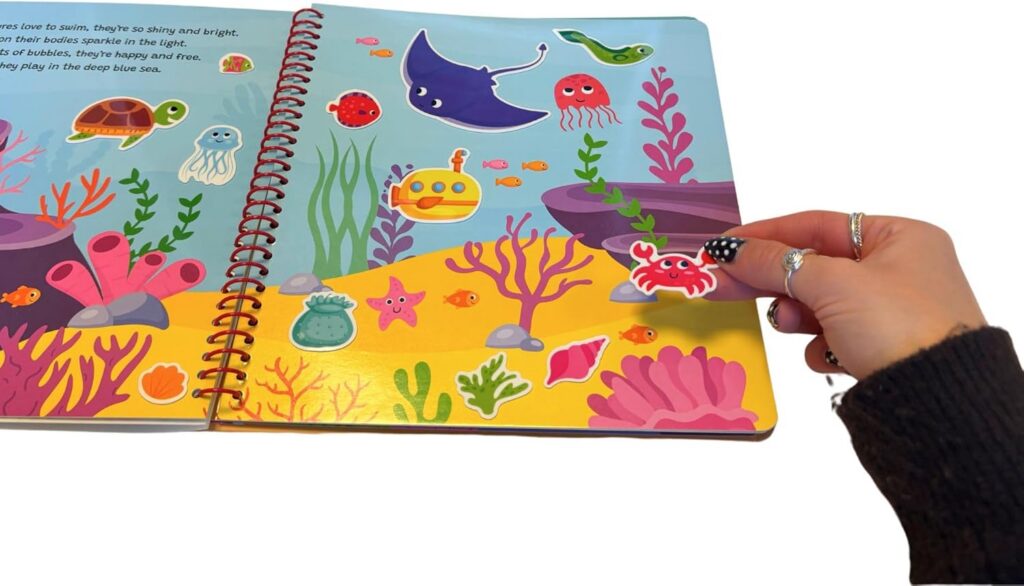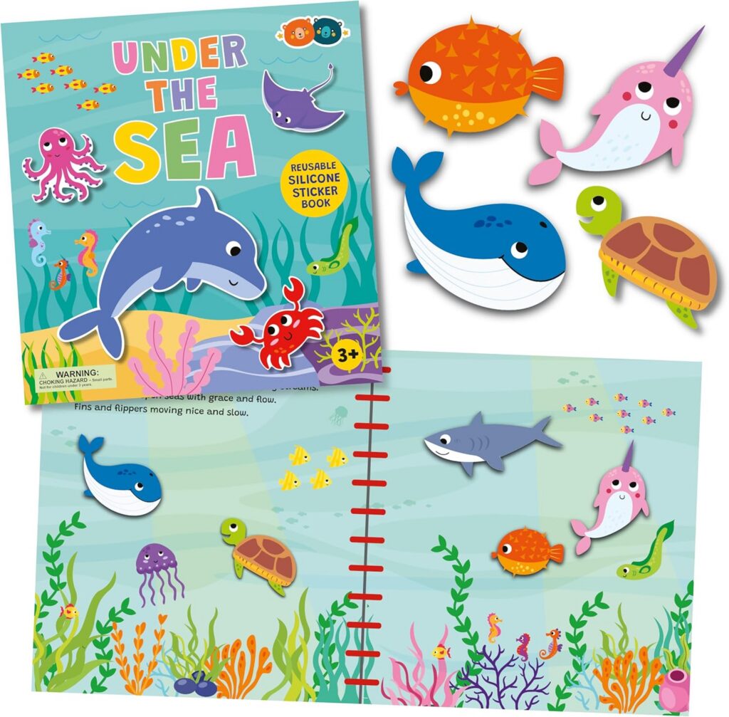 This engaging activity book is packed with reusable silicone stickers, letting children create endless ocean-themed scenes again and again.